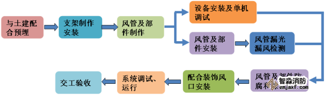 ①空調風系統施工工藝流程