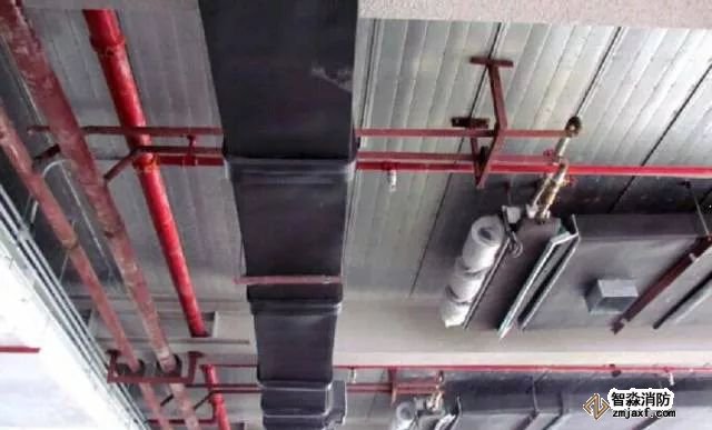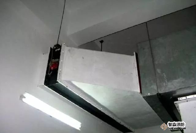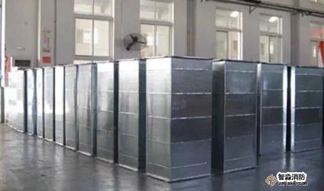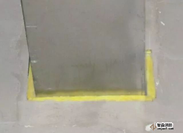 風管穿越防火墻應設有鋼板厚度1.6mm及以上的套管。套管內部應用玻璃棉等不燃材料封堵,外面用防火泥抹面。