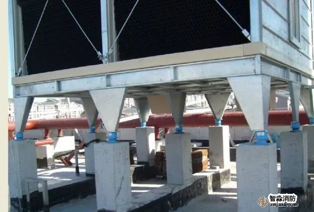 冷卻塔基礎尺寸標高、強度均應滿足要求基礎高度按管道安裝要求而定。基礎經過找平找正后安裝減振裝置,減震裝置與設備及基礎螺栓固定。