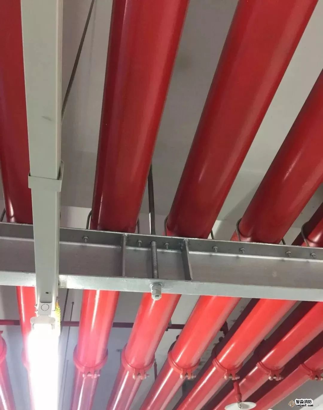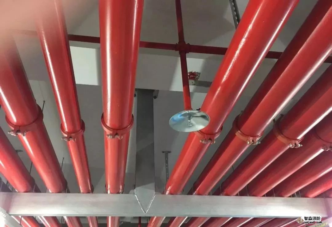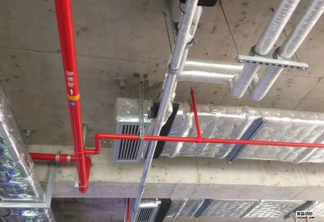 消防噴淋管道間距一致,標(biāo)識清楚、成排成線。