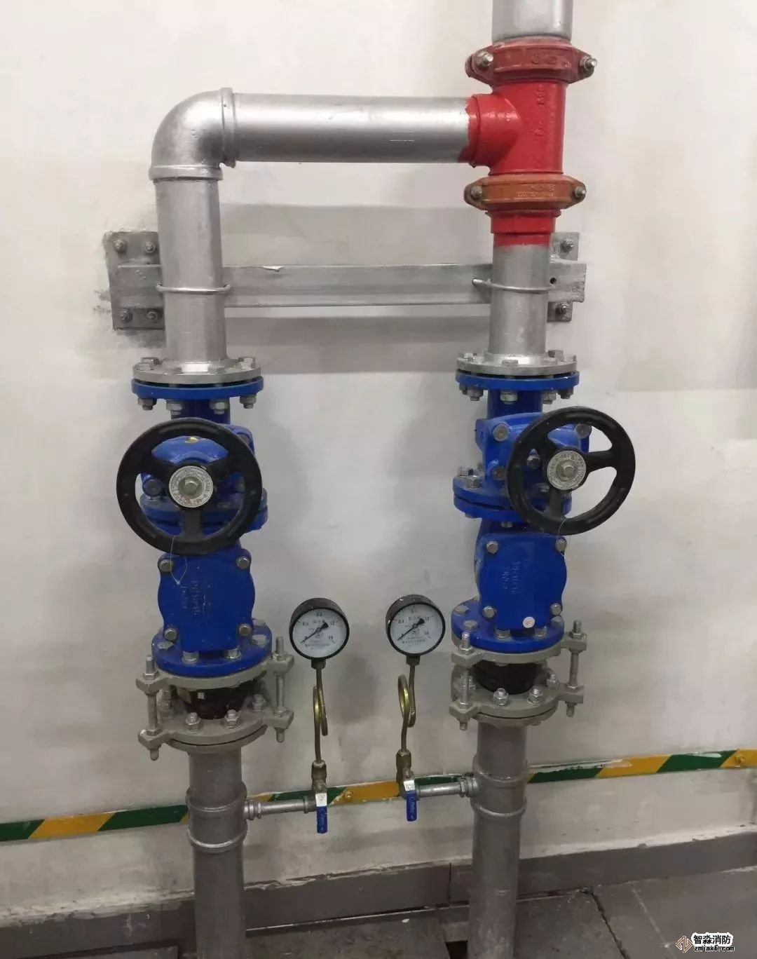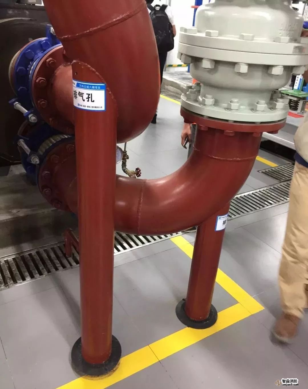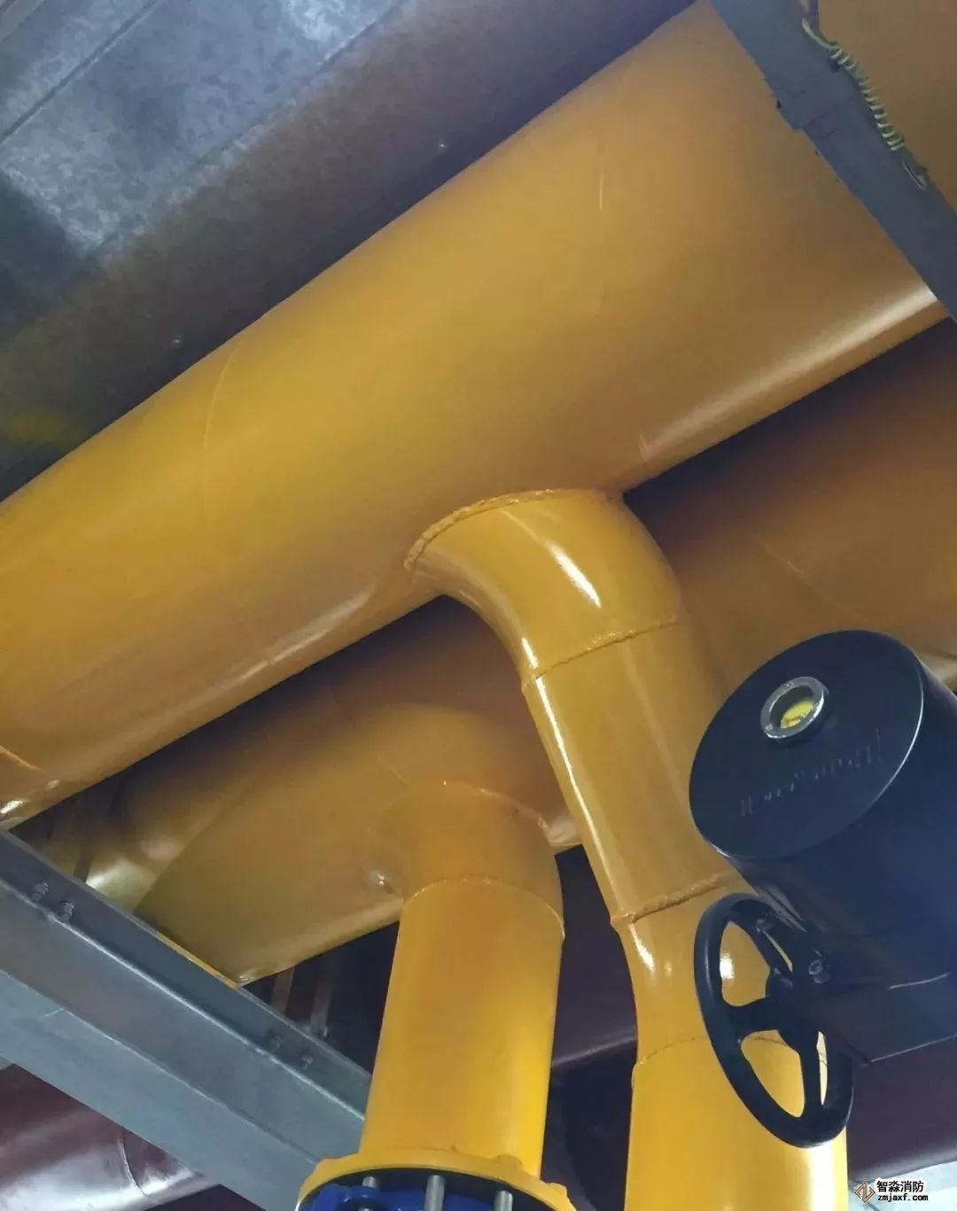 消防噴淋管道間距一致,標(biāo)識清楚、成排成線。