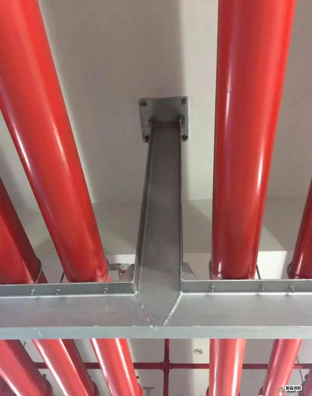 噴淋支管橫平豎直,標(biāo)識清楚、支架布置間距合理。