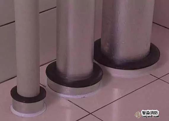 管道穿樓板處根部應設套管或護墩,套管與管道之間應做防火封堵,頂部齊平光滑,設裝飾圈。