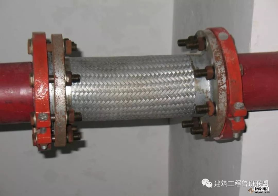 2. 水泵、冷水機組、風機盤管、空調機組等機電設備與水管之間用軟管連接,不使振動傳遞給管路。軟管有兩類:橡膠軟接管和不銹鋼波紋管。橡膠軟接管隔振減噪的效果很好,缺點是不能耐高溫和高壓,耐腐蝕性也差。在空調與采暖的水系統中多用橡膠接管。不銹鋼波紋管能耐高溫、高壓和耐腐蝕,但價格較貴,一般用于制冷劑管路的隔振。