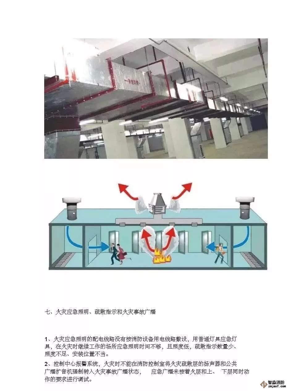 6.商業營業廳內店鋪裝修時,廣告牌和門頭下垂高度大于50cm,形成獨立的防煙分區,但未設排煙口。主要是因為店鋪在內部裝修時不經統一審核,設計單位不能及時提醒造成的。遇到此類問題,一般要求廣告牌在排煙口附近位置留缺口或增設排煙口。