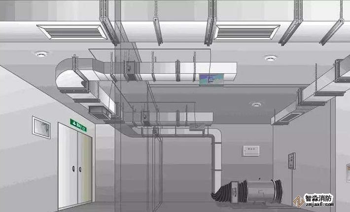 機械排煙設施包括排煙風機、排煙管道、排煙防火閥、排煙口、擋煙垂壁等。