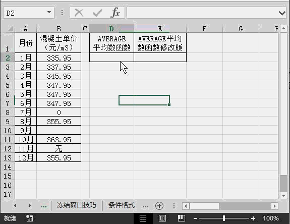 對于平均數函數Average大家想必不會陌生,但是工程造價中某些特殊情況需要將這個函數作一個小小地改動以獲得我們所需數據。下面請看動態演示: