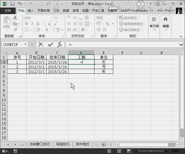 2.Datedif函數計算工期及租賃天數