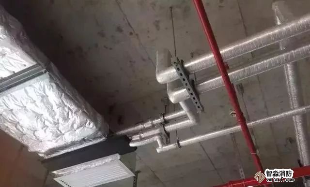 空調水管道,坡度正確,支架布置合理,保溫整齊美觀。