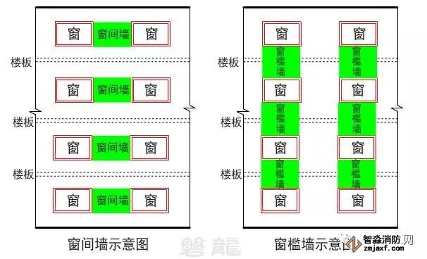 窗檻墻的功能和防火挑檐類似,是防止火災(zāi)通過(guò)建筑外立面的開口(從建筑外部)在上下層間蔓延。
