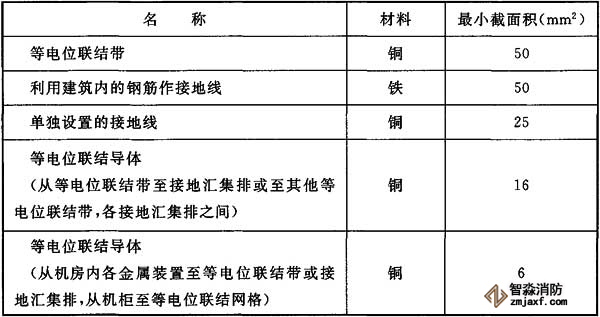 等電位聯(lián)結帶、接地線和等電位聯(lián)結導體的材料和最小截面積