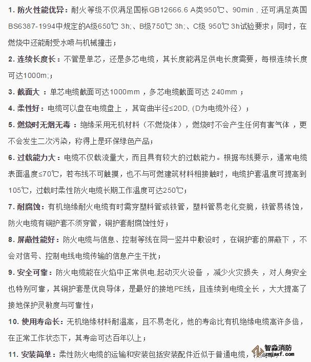 12. 安裝費(fèi)用低:柔性防火電纜由于制作工藝先進(jìn),安裝簡單,在同等條件下其綜合費(fèi)用比礦物絕緣電纜的費(fèi)用明顯降低。