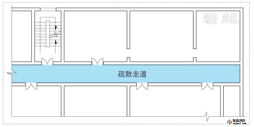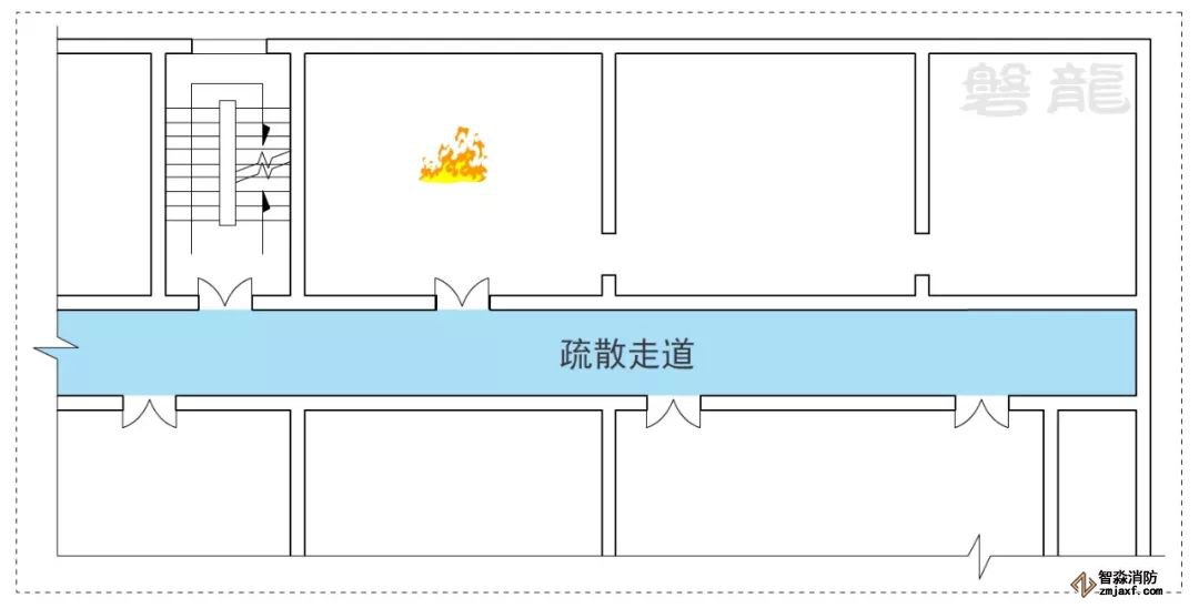 1、室內(nèi)房間屬于危險區(qū)域,一旦發(fā)生火災,人員應迅速疏散至相對安全的次危險區(qū)域(疏散走道),通過疏散走道疏散至安全出口(圖示1)。