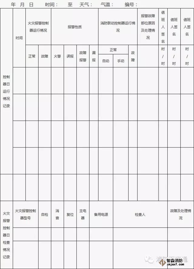 2、消防控制室值班人員應當在崗在位,認真記錄控制器日行情況,每日檢查火災報警控制器的自檢、消音、復位功能以及主備電源切換規能,并填寫附表的相關內容。