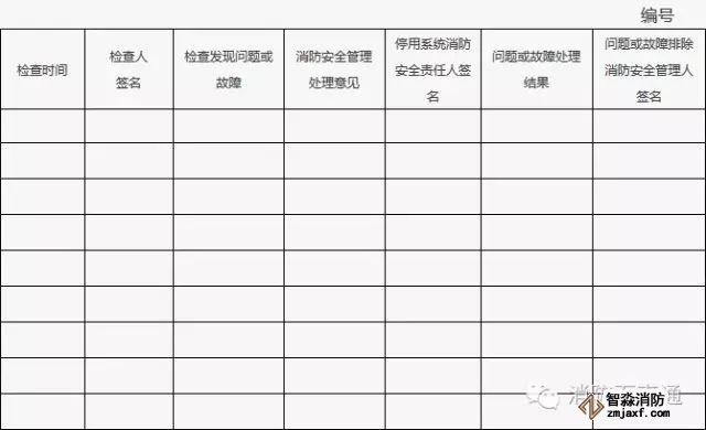 4、附表中各項目情況正常打“√”,存在問題或故障的打“×”;對發現的問題應及時處理,當場不能處置的要填報《建筑消防設施故障處理記錄》。