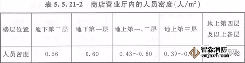 根據《建筑設計防火規范》5.5.21-7要求,商店的疏散人數應按每層營業廳的建筑面積乘以表5.5.21-2規定的人員密度計算。具體確定人員密度值時,應考慮商店的建筑規模,當建筑規模較小(比如營業廳的建筑面積小于3000m²)時宜取上限值,當建筑規模較大時,可取下限值。