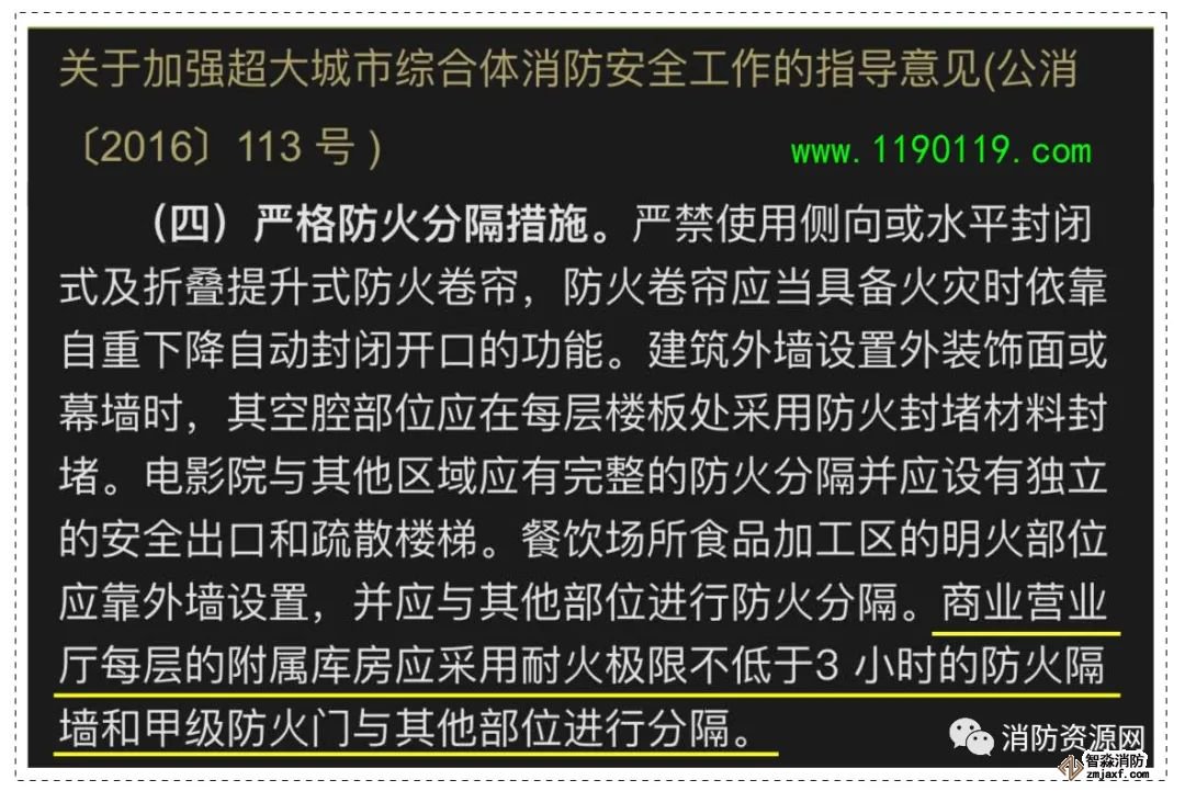 2、對于較大面積的商店建筑附屬庫房,應采取更嚴格的防火分隔措施,以下標準可供參考: