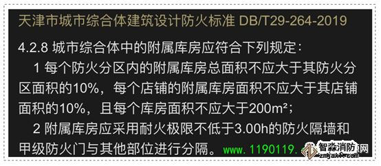 除小型便利商店或超市外,商店建筑的庫房,不應參照上述民用建筑的附屬庫房要求設置,詳見文末疑難探討。