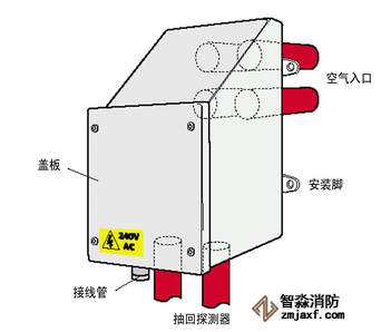 § 空氣加熱器需要使用AC電源,建議對其工作狀態進行連續監控。為此,要求廠家配備溫度調節裝置,并安裝在氣流進入GST空氣采樣式感煙火災探測報警器的位置。此開關的輸出可用于故障報警。