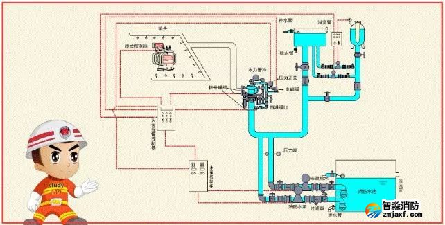 配置供給泡沫混合液的設(shè)備后,組成既可噴水又可以噴泡沫的自動噴水-泡沫聯(lián)用系統(tǒng)。