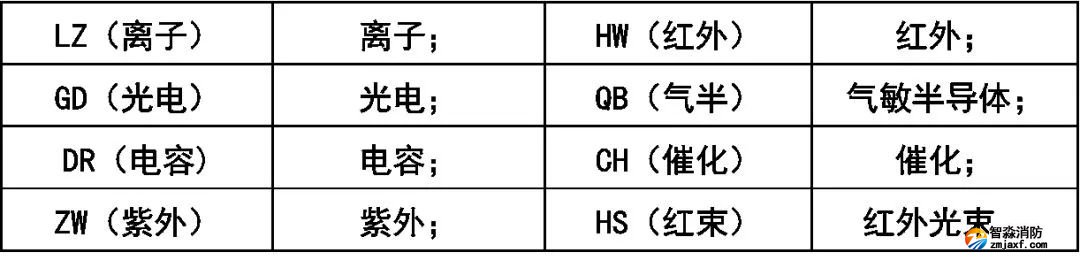 感煙火災(zāi)探測器、感光大災(zāi)探測器、 可燃?xì)怏w探測器傳感器特征表示法: