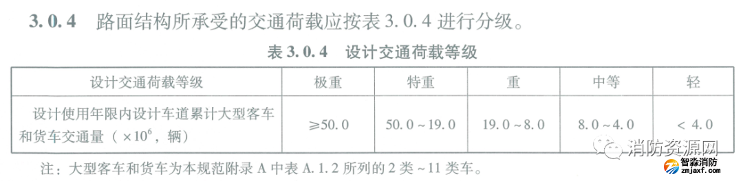 本文觀點:對于建筑物的自用消防車道來說,消防車的通行概率很低,以水泥混凝土路面和瀝青路面為例,即使最低標準的輕交通或中等交通路面,也可滿足消防車的最高承載力要求(10kg/cm²),且這兩個路面等級的建造成本相差不大。依此,實無必要糾結消防車道及登高場地的承載力問題,可統一按不小于10kg/cm²處置。