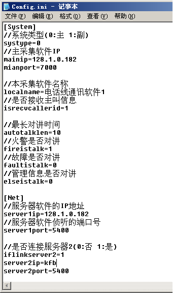 serverlevel=0 //設置服務器的級別,當此值設置0時,服務器以主工作方式,投入接警運行狀態,當此值為1時,工作在備份模式,此時不處理接警。