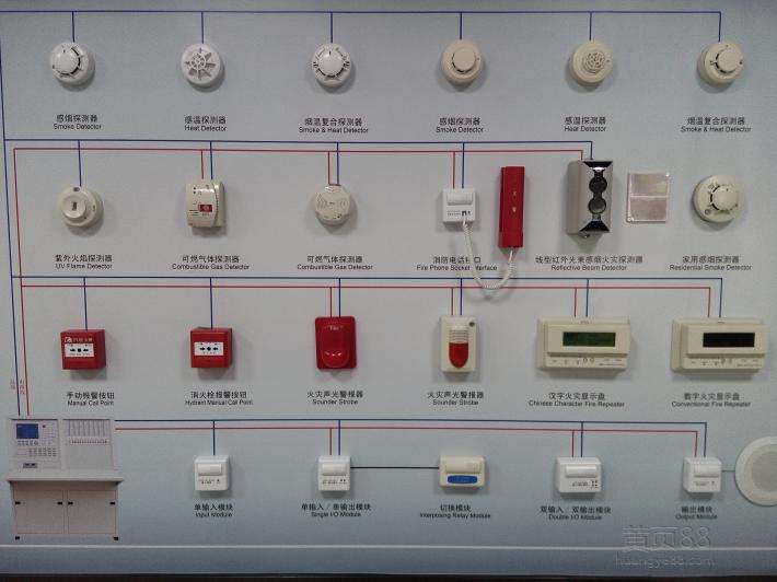1.現場由感煙探測器、感溫探測器、火焰探測器、手動報警按鈕及火災顯示盤、聲光警報器等組成;監控室由火災報警控制器、消防控制室圖形顯示系統組成。