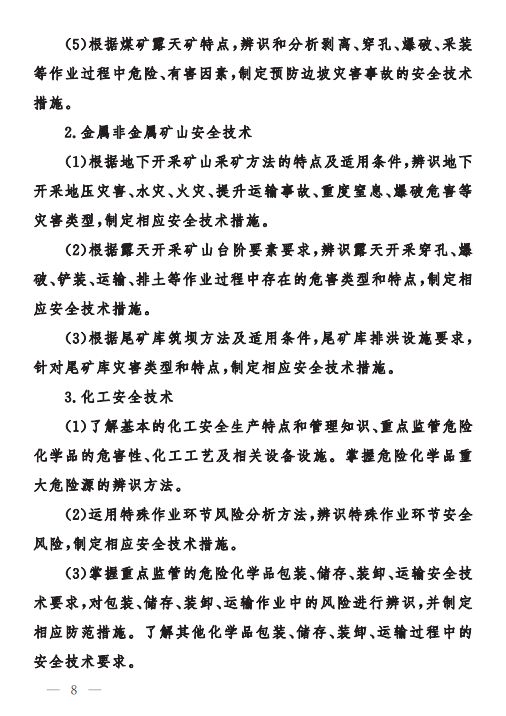 為做好中級(jí)、初級(jí)注冊(cè)安全工程師職業(yè)資格考試工作,按照《注冊(cè)安全工程師職業(yè)資格制度規(guī)定》《注冊(cè)安全工程師職業(yè)資格考試實(shí)施辦法》(應(yīng)急〔2019〕8號(hào))有關(guān)要求,應(yīng)急管理部組織編制了《中級(jí)注冊(cè)安全工程師職業(yè)資格考試大綱》《初級(jí)注冊(cè)安全工程師職業(yè)資格考試大綱》,經(jīng)商住房和城鄉(xiāng)建設(shè)部、交通運(yùn)輸部同意,人力資源社會(huì)保障部審定,現(xiàn)予以印發(fā)施行。