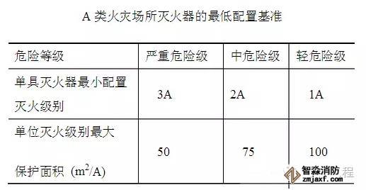 新規范規定的A類火災場所滅火器的最低配置基準規定:單具滅火器最小配置滅火級別為: 嚴重危險級為3A;中危險級為2A;輕危險級為1A;