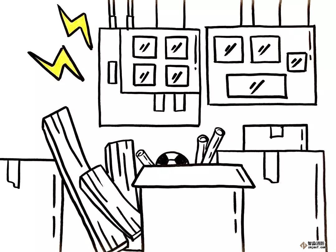 配電箱、重要電器控制柜是電器的總開關,一旦發生故障,容易短路產生電火花,引燃周邊可燃物,發生火災。