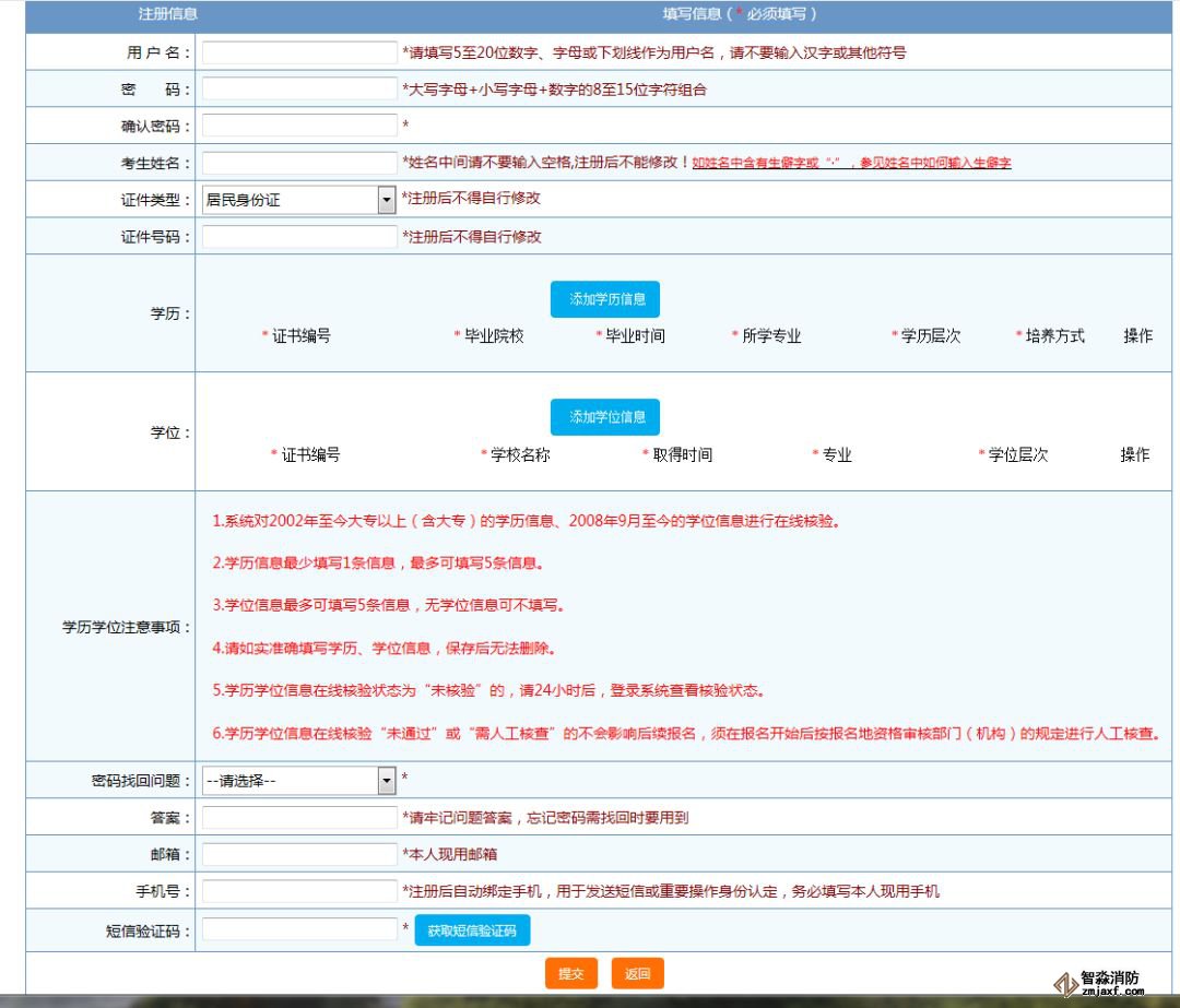 報考人員在填報信息時,姓名、身份證號、學(xué)歷及學(xué)位信息自動調(diào)用用戶注冊信息,填報的信息項中帶“*”的為必錄項,填寫完成后,輸入驗證碼,點擊“保存”按鈕。