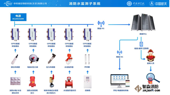 消防水壓監測系統,由壓力變送器(水壓探頭)、水壓遠傳數據模塊兩部分組成,具有實時監測消防水壓力變化及水位是否正常,遠程傳輸消防消防水壓情況等功能,從而確定水壓的正常與否,確保消防給水設備正常運行。