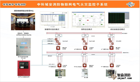 電氣火災探測系統涵蓋了電氣火災預警—消防電源監測—故障電弧監測—電弧斷路四個功能模塊,系統對線纜溫度、電流、剩余電流進行實時在線監測和統計分析,可實現對配電柜、二級箱柜、末端的配電箱等各關鍵節點的剩余電流、電流和溫度的實時監測,形成了電氣火災內部閉環式管理。