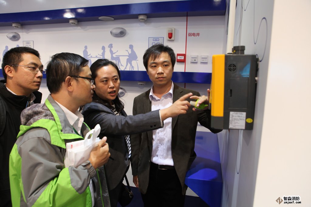 參觀者向技術人員了解海灣消防遠程監控管理系統