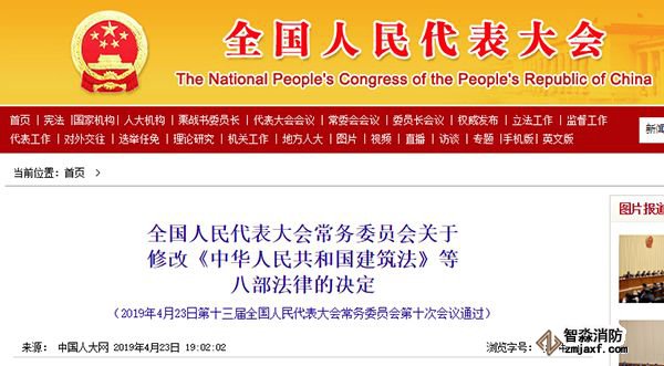 4月23日,新《消防法》由全國人民代表大會常務(wù)委員會第十次會議通過,并公布實施。主要新在稱謂(消防救援機構(gòu)取代了公安機關(guān)消防機構(gòu),國家綜合性消防救援隊取代了公安消防隊)、職能和住建承擔工程審驗。