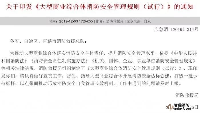 12月3日,應(yīng)急管理部消防救援局印發(fā)《大型商業(yè)綜合體消防安全管理規(guī)則(試行)》的通知。第十二條明確:消防安全管理人對消防安全責(zé)任人負責(zé),應(yīng)當具備與其職責(zé)相適應(yīng)的消防安全知識和管理能力,取得注冊消防工程師執(zhí)業(yè)資格或者工程類中級以上專業(yè)技術(shù)職稱。