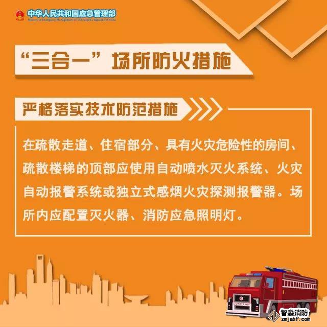 “三合一”場所指生產、住宿和經營在一起的小場所,由于生活用火用電和倉儲、經營混雜,大多較簡陋、擁擠、可燃物多,極易引發火災。該如何預防火災事故發生?