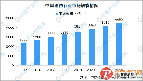 消防安全意識逐步提高,消防逐漸成為主動需求。城鎮化水平和交通運輸等配套投資不斷提高,持續帶動消防需求隨著我國城鎮化水平的不斷提升,消防行業的發展也迎來重要契機。近幾年,消防行業規模迅速擴大。2015年消防行業市場規模2355億元,2019年市場規模突破3500億元,預計2022年市場規模將達到4465億元。