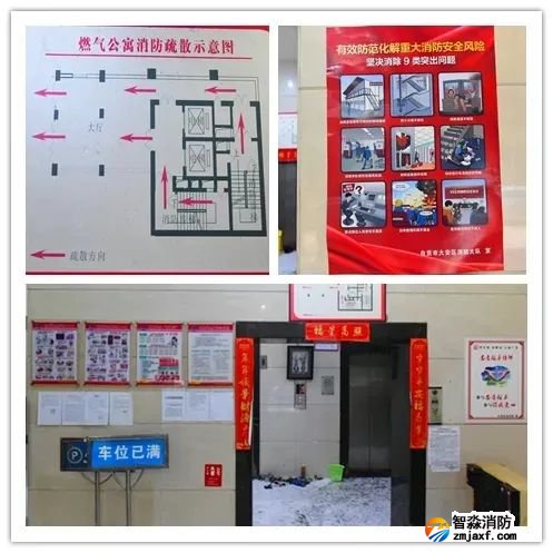 入戶大廳醒目位置均張貼有各類消防宣傳海報和圖片資料。
