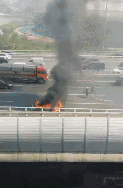 中隊指揮員立即下達任務,一名隊員配合維護好現場秩序,防止對旁邊的圍觀群眾造成傷害。為避免復燃及爆炸危險,滅火組隊員先將發動機蓋撬開,迅速出一支水槍對其進行冷卻降溫。在對事故車輛發動機與前輪胎煙霧進行壓制后,滅火組迅速轉戰駕駛室,對駕駛室內起火點用水槍進行逐個擊破,4分鐘左右,全部起火點全部撲滅后,在確定無復燃可能性后,中隊指揮員將事故現場移交至警方。