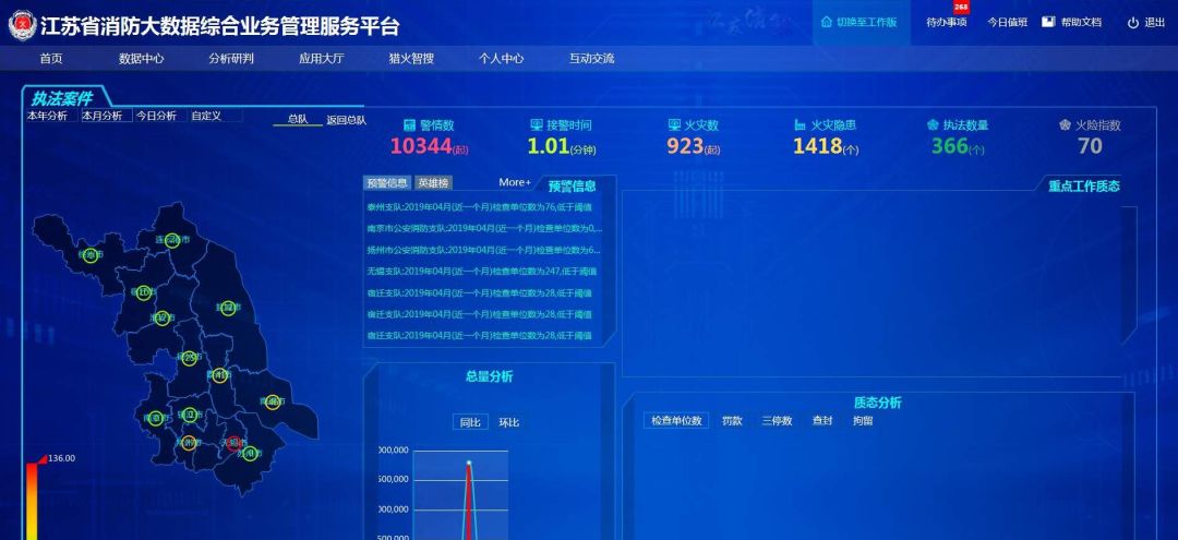 會上,播放了全省“智慧消防”建設成果視頻片,展示了在全省“1+3+N”(即一個底層消防大數據平臺、省市縣三級應用、N個基于大數據架構下的消防應用場景)大數據建設的整體框架下,一些支隊在風險監測、預知預警、防滅火工作、創新應用、隊伍管理規范精細等方面的“智慧消防”建設成果。