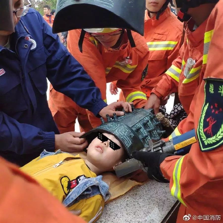 原來是醫(yī)院里面一個(gè)按摩床,小孩頭卡在床洞內(nèi)....