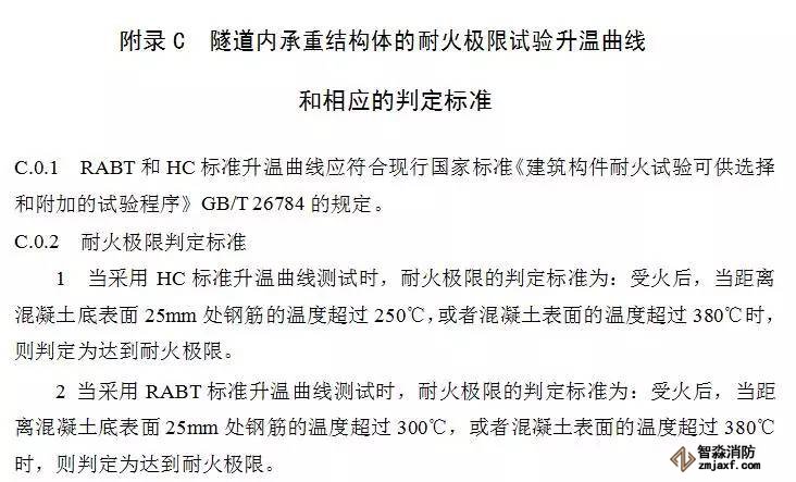 (1)一、二類隧道和通行機動車的三類隧道,其承重結構體耐火極限的測定應符合本規(guī)范附錄C的規(guī)定;