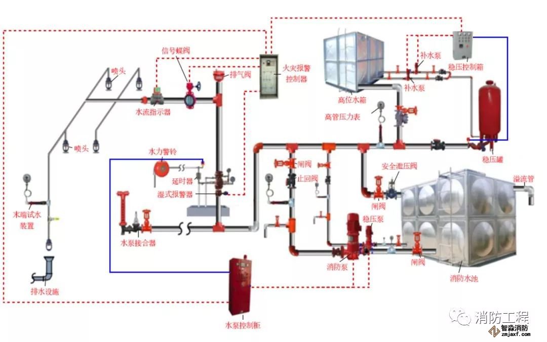 自動噴水滅火系統是由灑水噴頭、報警閥組、水流報警裝置(水流指示器或壓力開關)等組件,以及管道、供水設施組成的,并能在發生火災時噴水的自動滅火系統。自動噴水滅火系統在保護人身和財產安全方面具有安全可靠、經濟實用、滅火成功率高等優點,廣泛應用于工業建筑和民用建筑。