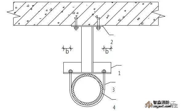 1.支架橫擔(dān) 2.鍍鋅螺桿 3.管碼 4.管道 5.頂爆螺栓 6.緊固螺栓