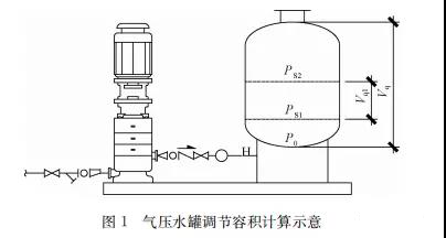 臨時高壓消防給水系統一般均應設置高位消防水箱(除符合規范規定可不設的情形外),且對其設置高度有一定要求。日本規范規定自動噴水滅火系統屋頂消防水箱最不利的最低供水壓力為0.15 MPa,美國、英國規范則要求0.10 MPa。我國1987年版和2006年版“建規”對比均沒有規定,只在條文中要求重力自流的消防水箱應設置在建筑的最高部位。1982年版《高層民用建筑設計規范》(以下簡稱“高規”)首次提出屋頂消防水箱應滿足最不利消火栓的靜水壓力,但沒有提出設計參數,1995年版“高規”做了具體規定。國標圖集98S205編制目的是為解決臨時高壓消防給水系統高位消防水箱設置高度滿足不了系統最不利點靜水壓力時應設增壓設施的要求,其為消防專用的增壓穩壓設備的主要功能只是火災初期時、消防主泵啟動前,確保具有足夠消防壓力的30 s儲水量進行初期火災撲救,直至消防主泵全負荷啟動運行。這里更多的還是強調增壓的概念,設備類似于氣壓供水,發揮主要作用的是氣壓水罐,穩壓水泵的作用是在3 min內,補足氣壓水罐內實際穩壓水容積。利用氣壓水罐所設定的P1、P2、PS1和PS2運行壓力來控制穩壓泵運行工況。P1為根據計算求得消火栓系統或自動噴水滅火系統中最不利點所需的消防壓力作為氣壓水罐的充氣壓力。平時管道系統如有滲漏泄壓等情況,控制穩壓水泵不斷補水穩壓,在PS1、PS2(啟動-停止)反復運行,一旦有火情,管道系統大量缺水,造成PS1下降(PS1→P2),降至P2時,立即啟動消防主泵。