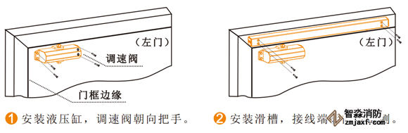 4) 確定好電動閉門器的安裝方向(拉門側或推門側)安裝閉門器滑槽及液壓缸;